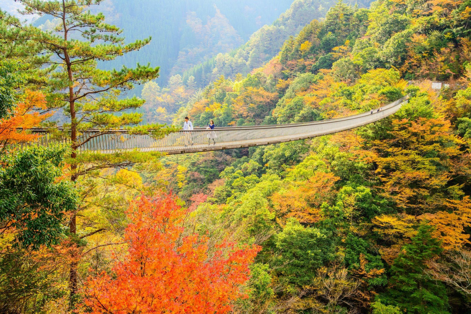 色付く木々の間を渡る「梅の木轟公園吊橋」