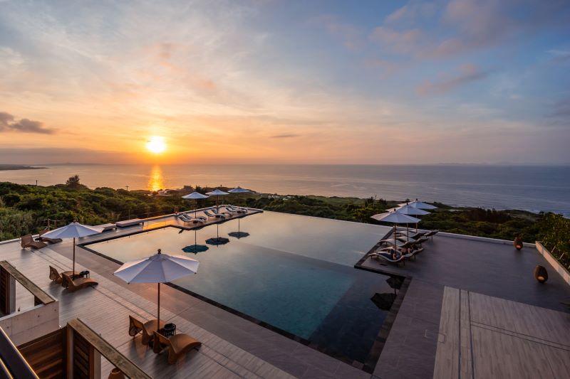 ティーヌ浜からの夕日もきれいだが、実はホテルのプールサイドこそは島有数の絶景スポット。夏だとほぼホテル正面の水平線に太陽が沈む。周囲をオレンジ色に染めながら東シナ海に沈みゆく夕日は忘れられない夏の思い出になるだろう。
