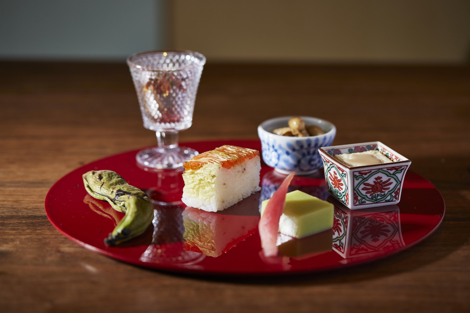 夕食は、個室タイプの食事処でいただきます。自家製果実酒から始まり、地域の旬の野菜や食材の“素”を楽しむことがテーマの料理(写真)。前菜は、焼そらまめ、赤こんにゃくオランダ煮、つぶ貝旨煮などが美しく盛られて(写真)、日本酒をちびちびと。栃木県産活〆鯉の洗いはサラダ仕立てのお造りで、ワインにも合いそう……などと思いを巡らせます。鯉はビタミンB1などが豊富で、疲労回復にもいいといわれる食材です。続いて那須和牛の焼きしゃぶなどを味わいつつ、仕上げは那須産コシヒカリのごはん。栃木県産牛山椒煮や甲イカ墨造り、大葉味噌などごはんのお供がたくさん並んで、最後までおいしくいただいてしまいました。