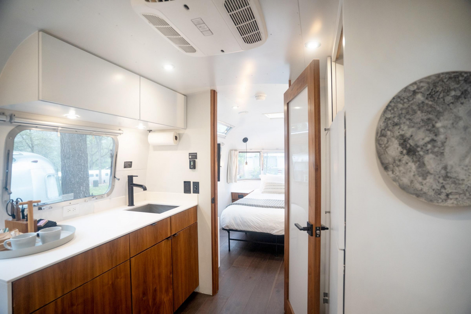 せっかくだからキャンプ気分も味わってみたい、と選んだもうひとつの滞在先が、「オートキャンプ ヨセミテ」。エアストリーム社製の高級キャンピング・トレーラーを改装したユニットは、キッチン、空調、シャワー・トイレ完備。気軽にグランピングできるのが魅力だ(写真)。