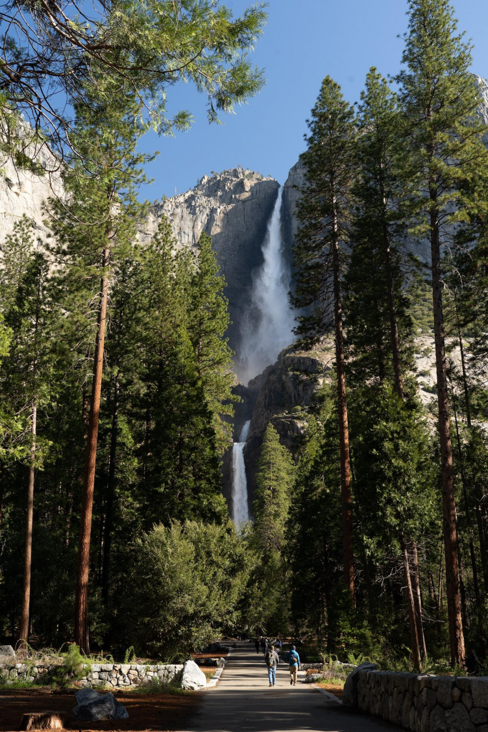 そそり立つ巨大な山々に圧倒されつつトレイルを20分程歩くと、辿り着くのはヨセミテ滝(写真)だ。轟く水音、冷たい水しぶき。凜としてすがすがしくも圧倒的なその姿には、畏怖も覚えた。