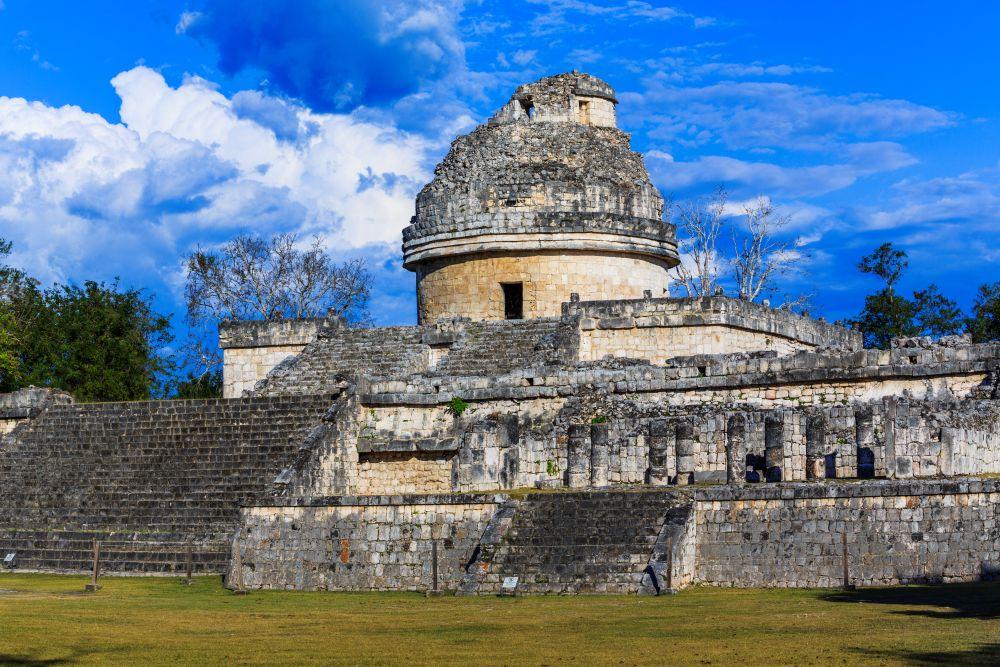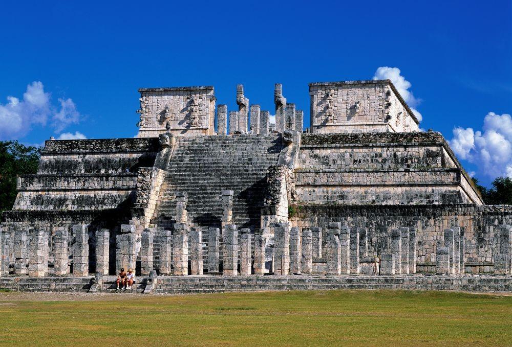 チチェン-イッツァの遺跡はトルテカ文明の影響が強い新チチェン-イッツァと、マヤ文明の建築様式が多く見られる旧チチェン-イッツァの2エリアに分けられる。新チチェン-イッツァで存在感を放つのが大神殿「エル・カスティージョ」(冒頭写真)。各91段ある4辺の階段と頂上の1段を足すと、太陽暦の1年の日数と合致するなど、神殿全体が農耕などに用いるマヤの暦の役割を果たしたと考えられている。新チチェン-イッツァにはほかに「戦士の神殿」(写真)やセノーテ、神聖な儀式としての球戯を行う「球戯場」などがある。旧チチェン-イッツァのみどころは、天文台の「カラコル」(写真)。ここから月、太陽、星を観測し、正確な暦を作ったという。