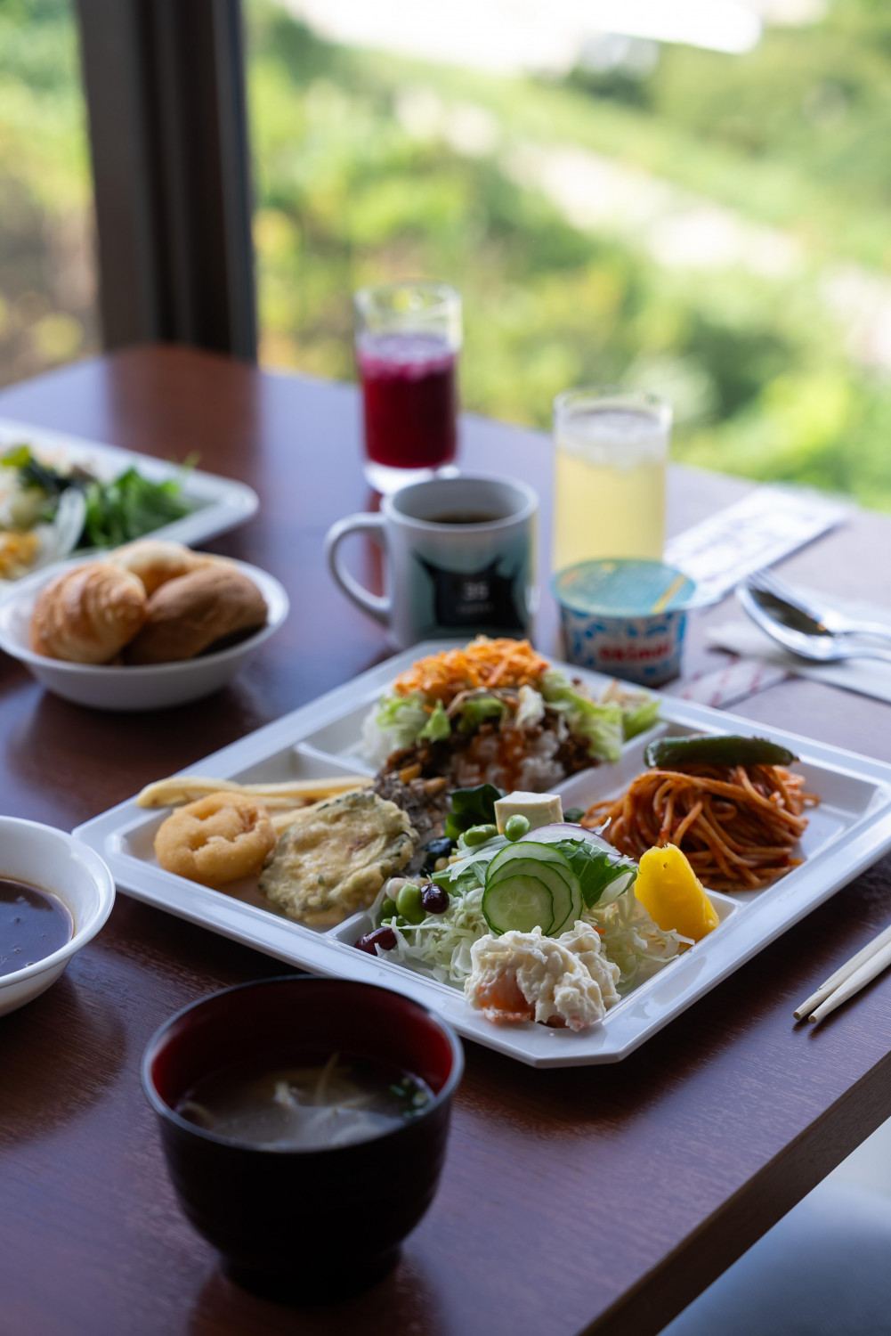 そんな名前が付いたレストランのランチは、ビュッフェスタイル。ラフテー(豚の角煮)やジューシー(炊き込みごはん)などの沖縄料理からサラダ、メイン、スイーツまでが揃った料理を、ピックアップして味わおう(写真)。レストランの前にはコバルトブルーの海が広がっている。美しい景色を眺めながら、会話が弾むランチタイムになりそうだ。