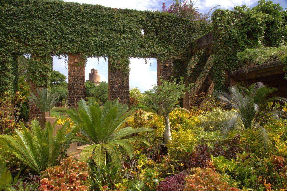 さらに先へ歩いていくと、レンガ造りの塔が見えてくる。これが「熱帯ドリームセンター」(写真)にある遠見台。熱帯ドリームセンターは常時2000株以上のランが咲き競い、珍しい植物やトロピカルフルーツが観賞できる植物園。何度でも訪れたくなる魅力的な花園だ。