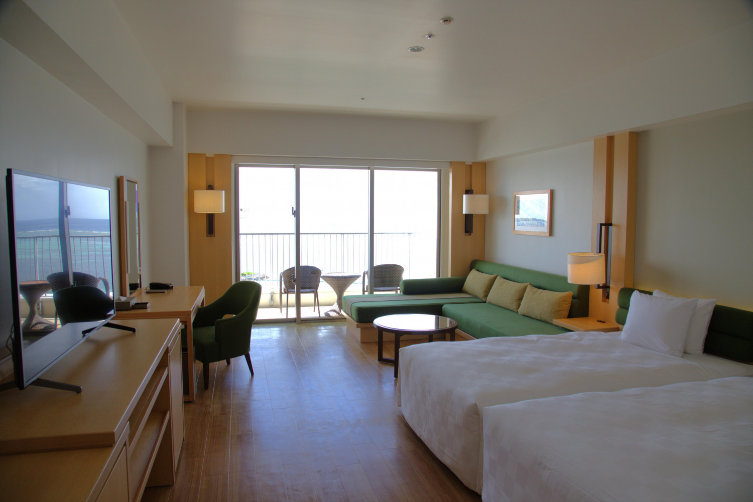 道路を挟んでこのビーチの向かいに立つのが、「オリオンホテル モトブ リゾート&スパ」だ。238ある客室(写真)のすべてがオーシャンビュー。朝に夕に色を変える海と伊江島を眺めているだけで、心がほどけていくだろう。