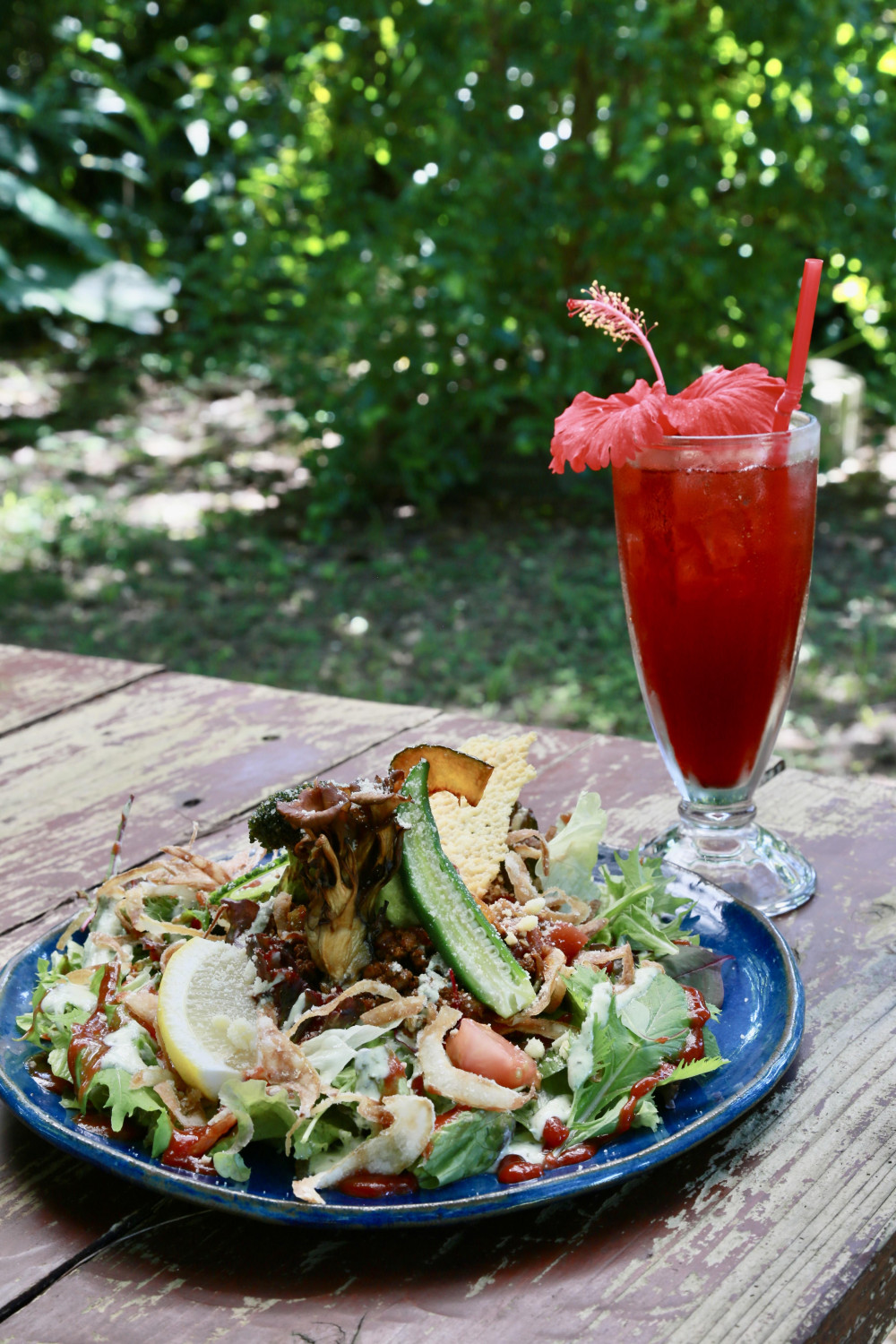本部半島は海や森の自然を生かしたすてきなカフェが多いことでも知られる。橋で渡れる瀬底(せそこ)島にある「fuu café(フー カフェ)」(写真)は、先代のオーナーが自ら原野を開墾して作った庭で、やすらぎの時間が過ごせる(写真)。ドライブの途中に立ち寄ろう。