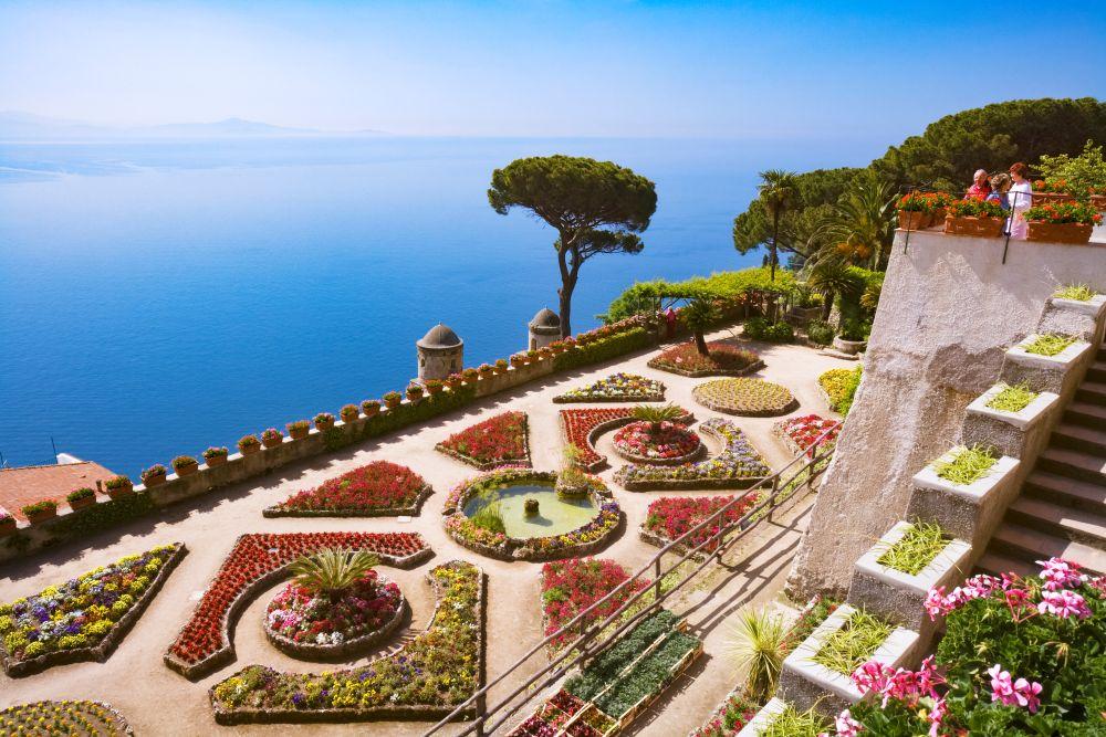 アマルフィ海岸の風景を高台から見下ろすなら、アマルフィからバスで約30分のラヴェッロへ。アトラーニとミノーリの間の高原にある町だ。港をもたない町だが、地中海やビザンツ世界との交易、羊毛工業などで発展し、その繁栄ぶりはボッカチオの小説『デカメロン』にも描かれている。モザイク(写真)で装飾されたビザンチン様式の説教壇が目を引く11世紀建立の「ドゥオーモ」のほか、「ヴィラ・ルーフォロ」(写真)などの富裕層の大邸宅といった、多くの歴史的建造物が残っている。絵画のような眺望は外国の貴族や文化人にも愛され、ワーグナーはこの町で訪ねたヴィラ・ルーフォロに着想を得て、歌劇『パルジファル』の『クリングゾルの魔法の花園』を作曲したという。いまのラヴェッロはアマルフィ海岸の絶景を見晴らす高級リゾート。毎夏ヴィラ・ルーフォロのテラスにはステージが特設され、絶景をバックに音楽祭が開催される。