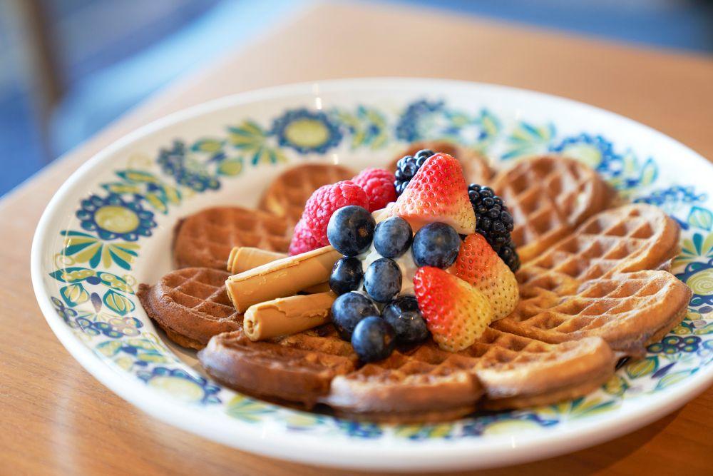 まずはアフタヌーンティーが楽しめる「ウィンターガーデン」(写真)へ。空間に林立する柱が、曲木の技術で美しいカーブを描き、まるで幹から枝が広がるように天井へと広がっている。北欧神話に登場するユグドラシル(世界樹)がモチーフとなった幻想的なエリアだ。レストランの「マンセンズ」は、バイキング・クルーズ創立者の〝母の味〞でノルウェーの家庭料理(写真)を味わえる。