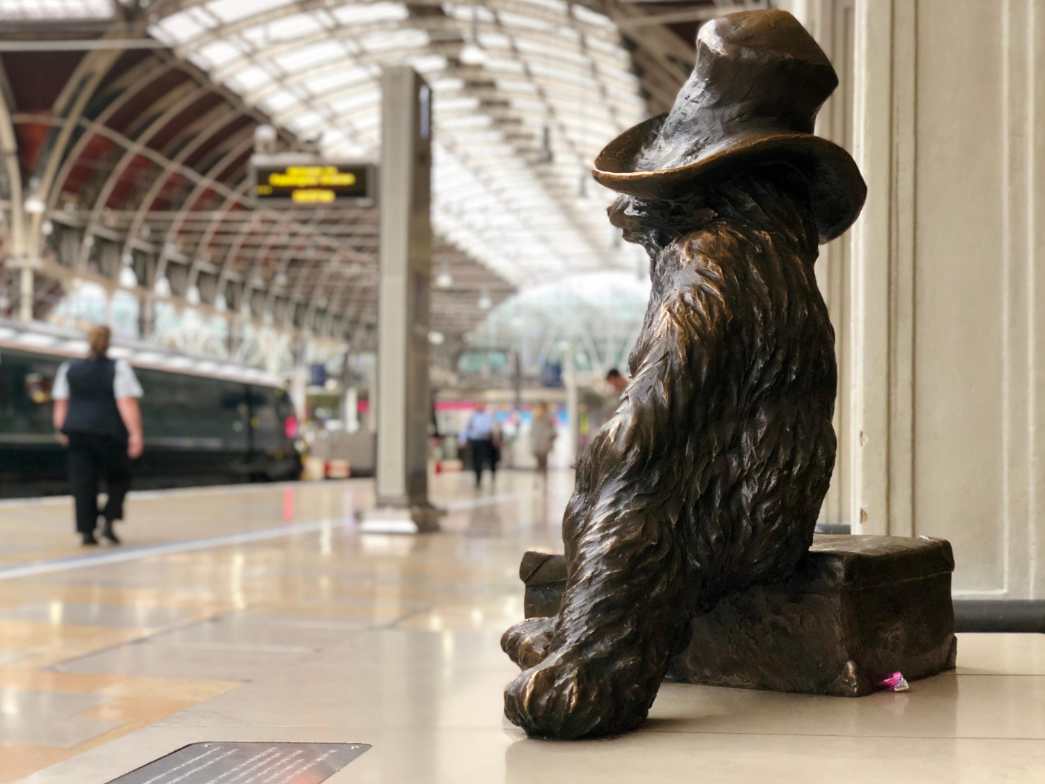 ペルーからやって来た礼儀正しい子ぐまが、古ぼけたスーツケースとともにブラウン夫妻に発見された場所が「パディントン駅」だ。物語の生みの親であるマイケル・ボンド氏が1950年代当時この駅周辺に住んでいたことから、主人公をパディントンと名付け、駅は瞬く間に世界中に知られる存在に。駅舎や周辺にはパディントンをかたどったアート作品がちりばめられ、「パディントン・トレイル」(写真)を楽しむことができる。